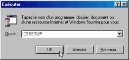 • Faire "Démarrer/Exécuter", taper "ICSSETUP" et cliquer sur le bouton OK.