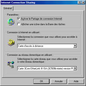 A la fin de l'installation, il est possible que le bouton "Partager" soit absent de l'onglet "Connexion" des propriétés Internet. Ce problème est référencé dans la fiche technique Q236152. Pour le résoudre, il faut extraire les fichiers INETCPL.CPL et INETCPLC.DLL.