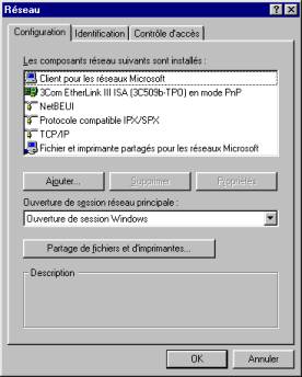Double-cliquer sur l'icône "Réseau" dans le panneau de configuration. Dans le cadre d'un accès à Internet par modem, les composantes réseau requises sont :