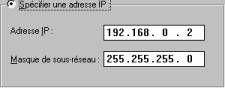 Dans l'onglet "Adresse IP", fixer une adresse IP entre 192.168.0.2 et 192.168.0.253