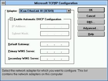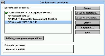 Sélectionner le protocole "Microsoft TCP/IP-32 3.11" et cliquer sur le bouton "Configurer".