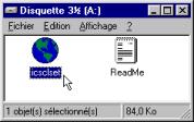La disquette ne contient que deux fichiers. Le fichier ICSCLSET.EXE permet de configurer le navigateur Internet sous Windows 95/98. Il supporte Internet Explorer 3.0 et supérieur, et Netscape Navigator 3.0 et supérieur. L'utilisation de la disquette est tout à fait optionnelle, la configuration du navigateur peut se faire manuellement.