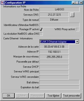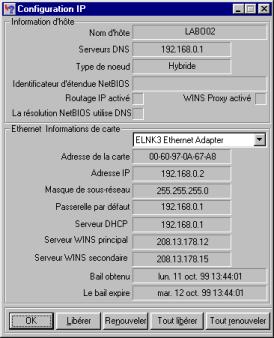 Note : Les procédures données ci-dessous s'appliquent toujours à des clients sous Windows 95/98. Pour les appliquer sous d'autres systèmes d'exploitation il est donc nécessaire de les adapter, quand cela est possible (par exemple, sous Windows 3.11 utiliser la commande MS-Dos IPCONFIG à la place de WINIPCFG de Windows 95/98).