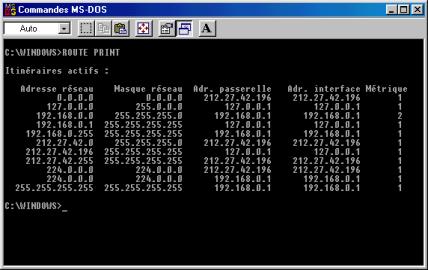 commande ROUTE PRINT sur un ordinateur client est moins touffue :